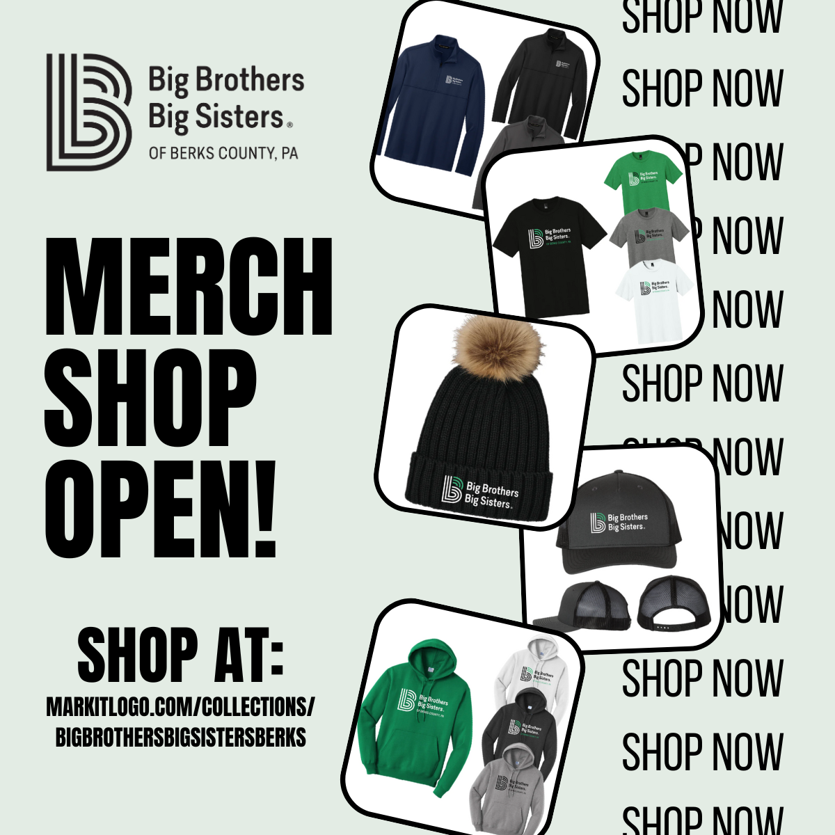 New merch. Big impact! Every purchase from our shop helps support meaningful mentoring relationships that change lives, right here in our community!